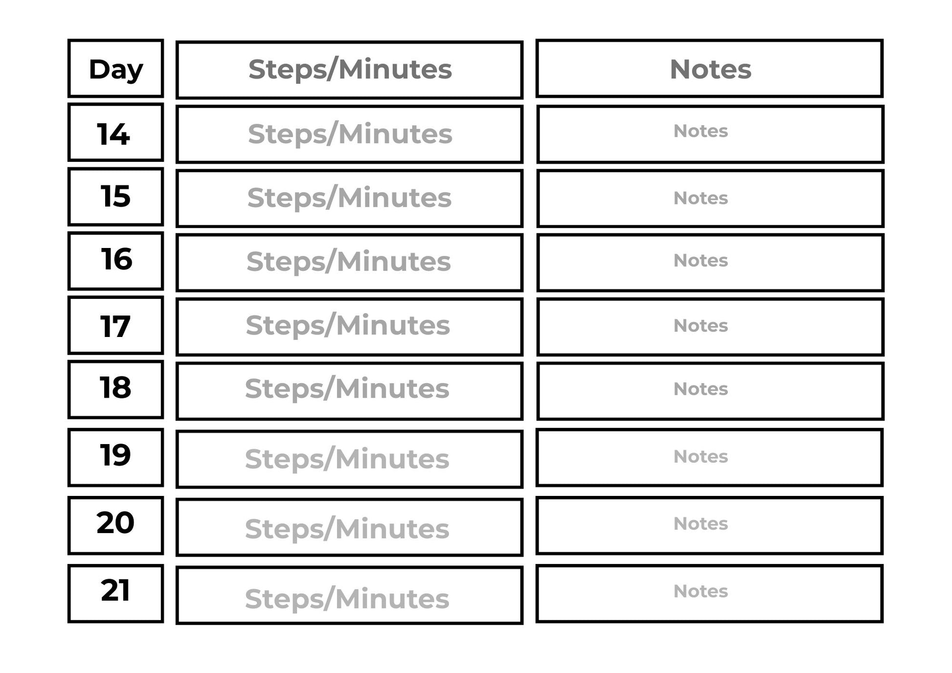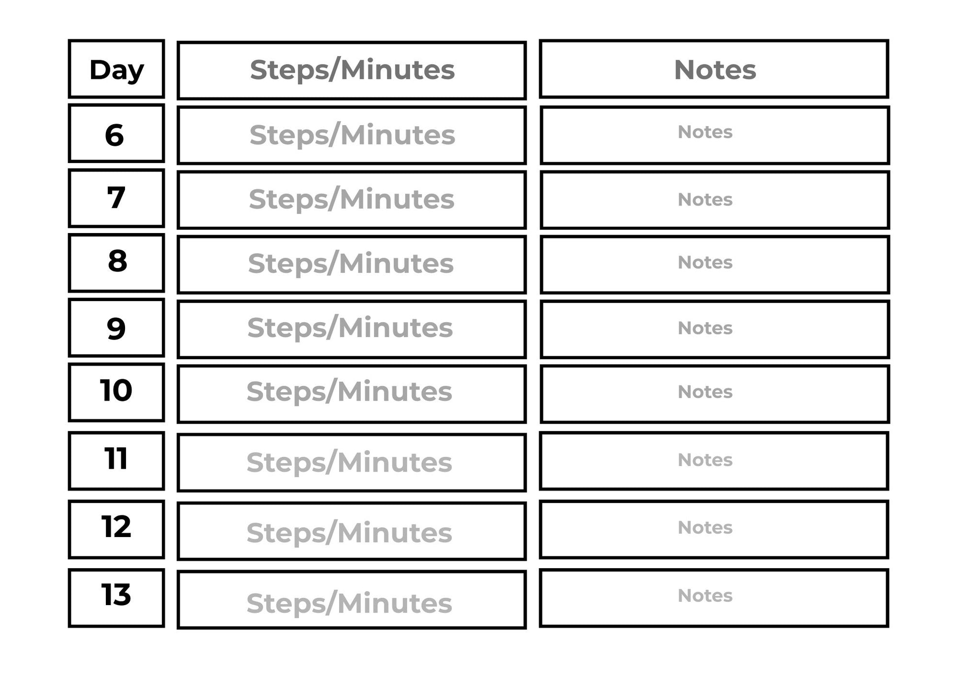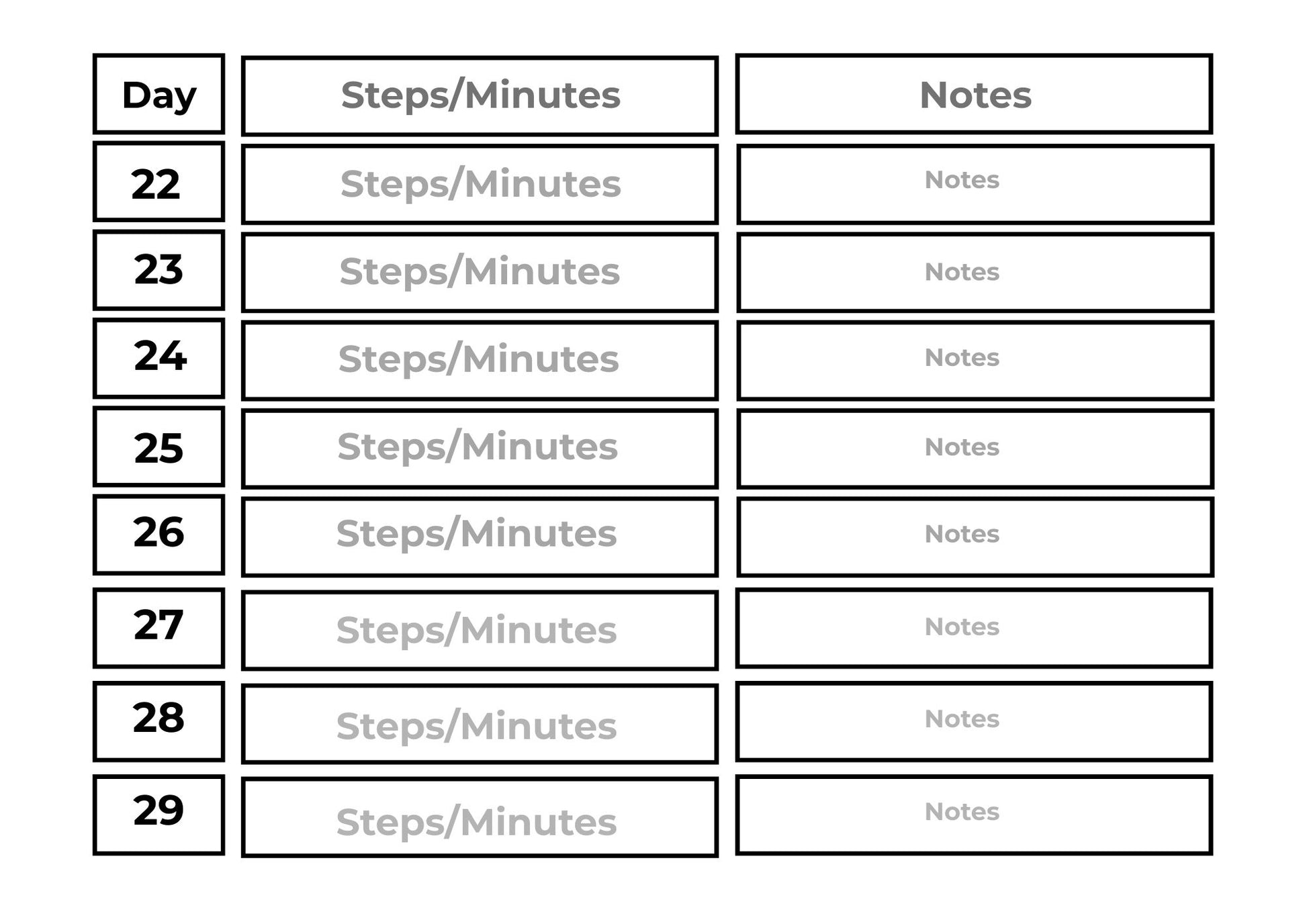 Designed for beginners and anyone who prefers a calm, uncluttered layout, this tracker helps you stay consistent without pressure. Track your daily walks by steps or minutes, add notes, and reflect on your progress at the end of the month.