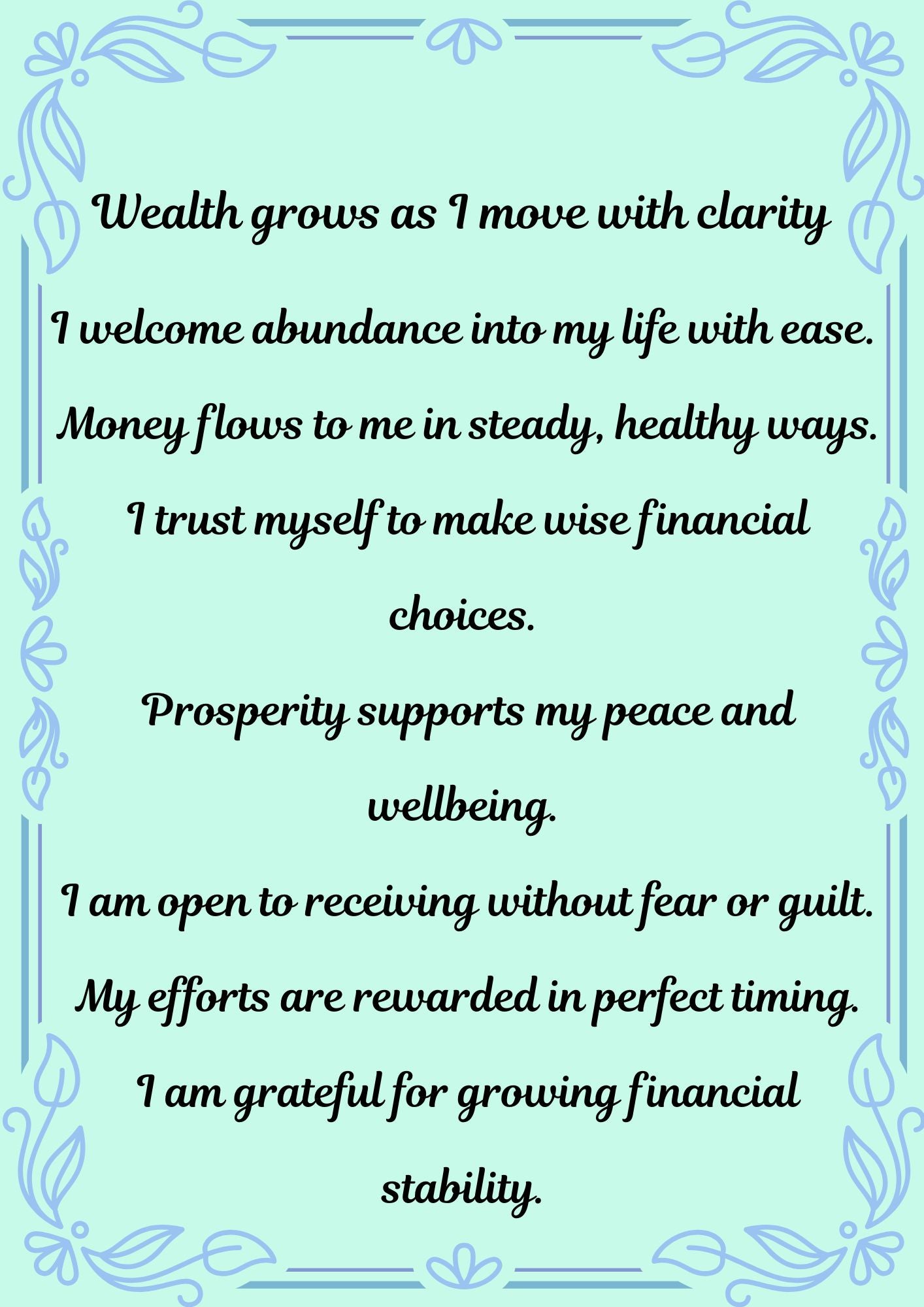 Create a calm, positive relationship with money using this Prosperity & Money Affirmations printable set, designed to support a grounded, healthy wealth mindset.