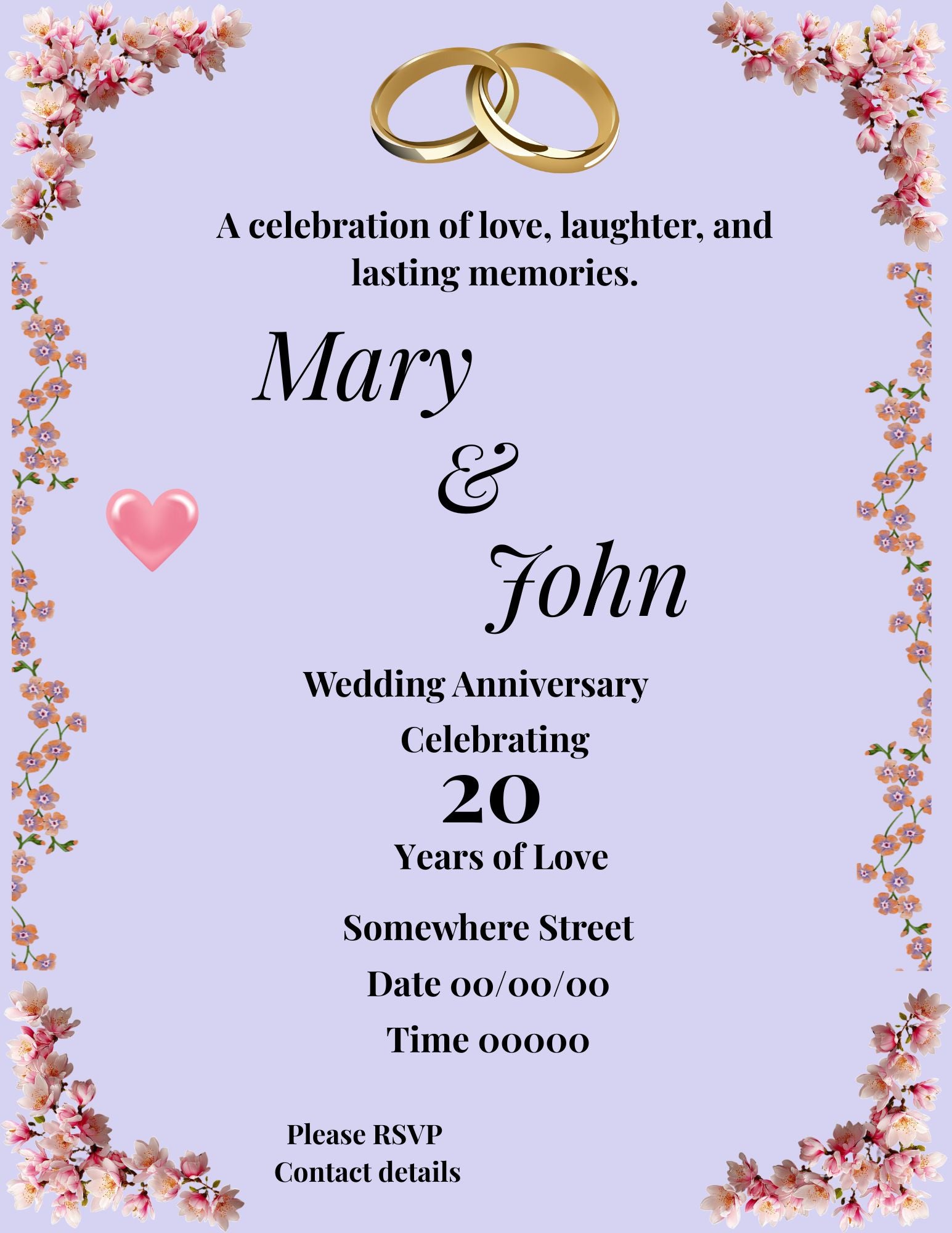 1 x Editable Wedding Anniversary Invitation (A4 size)
